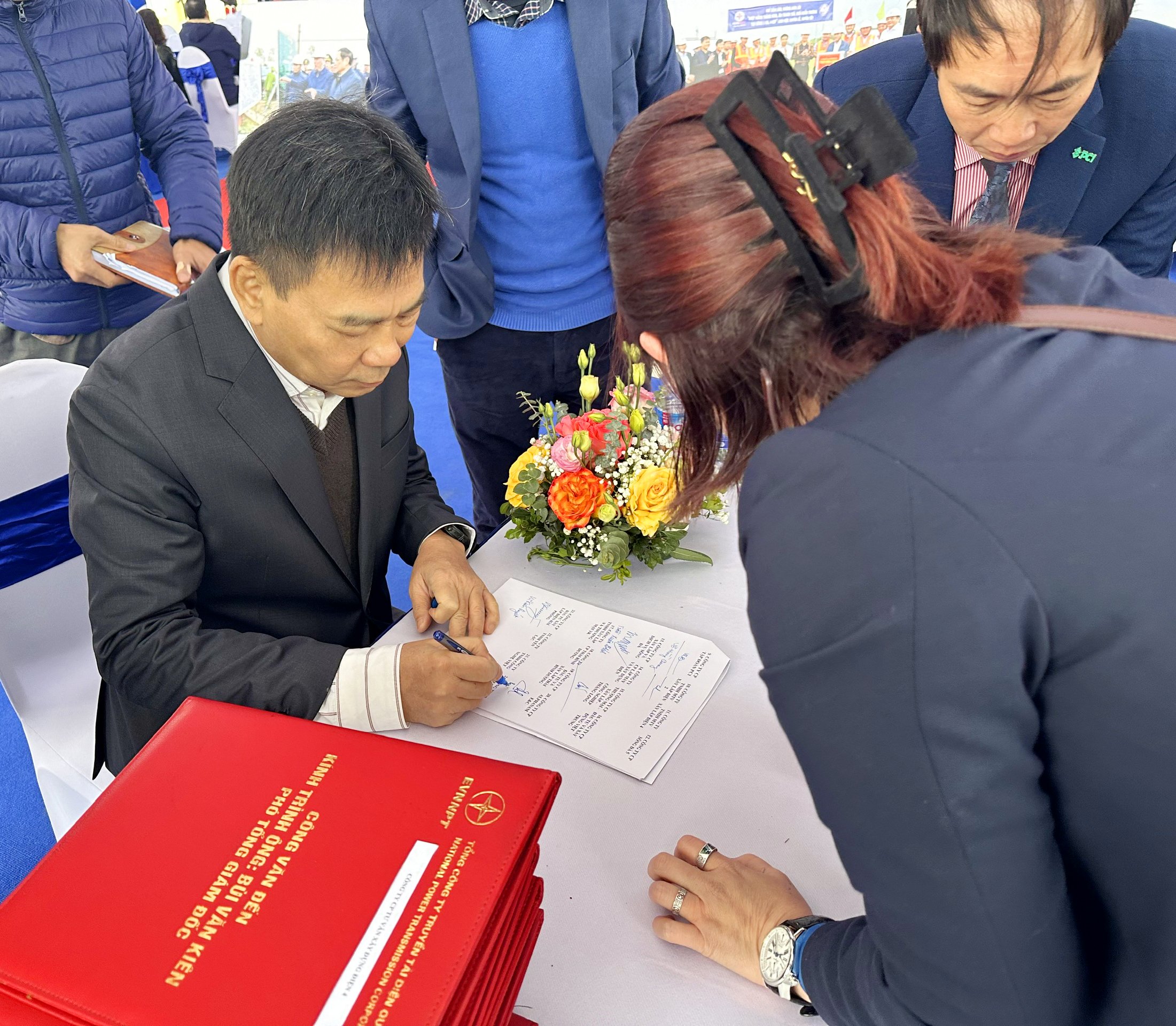 Ông Bùi Hoàng Tuấn – Chủ tịch HĐQT Công ty Cổ phần Alphanam E&C tham gia Lễ phát động thi đua Dự án Đường dây 500kV mạch 3 và trực tiếp ký vào cam kết thi đua