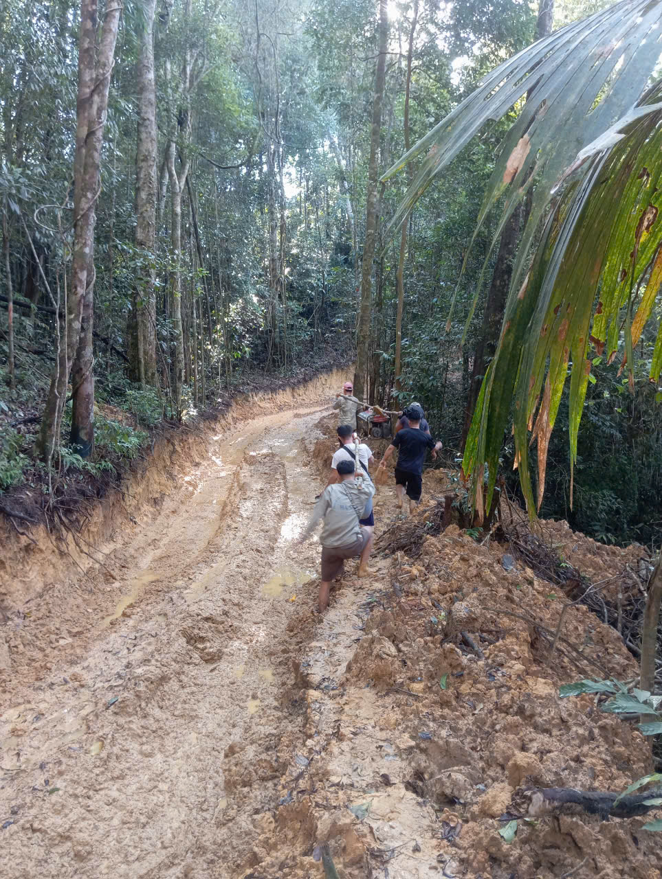 Vận chuyển dụng cụ bằng sức người băng qua những con đường lầy lội