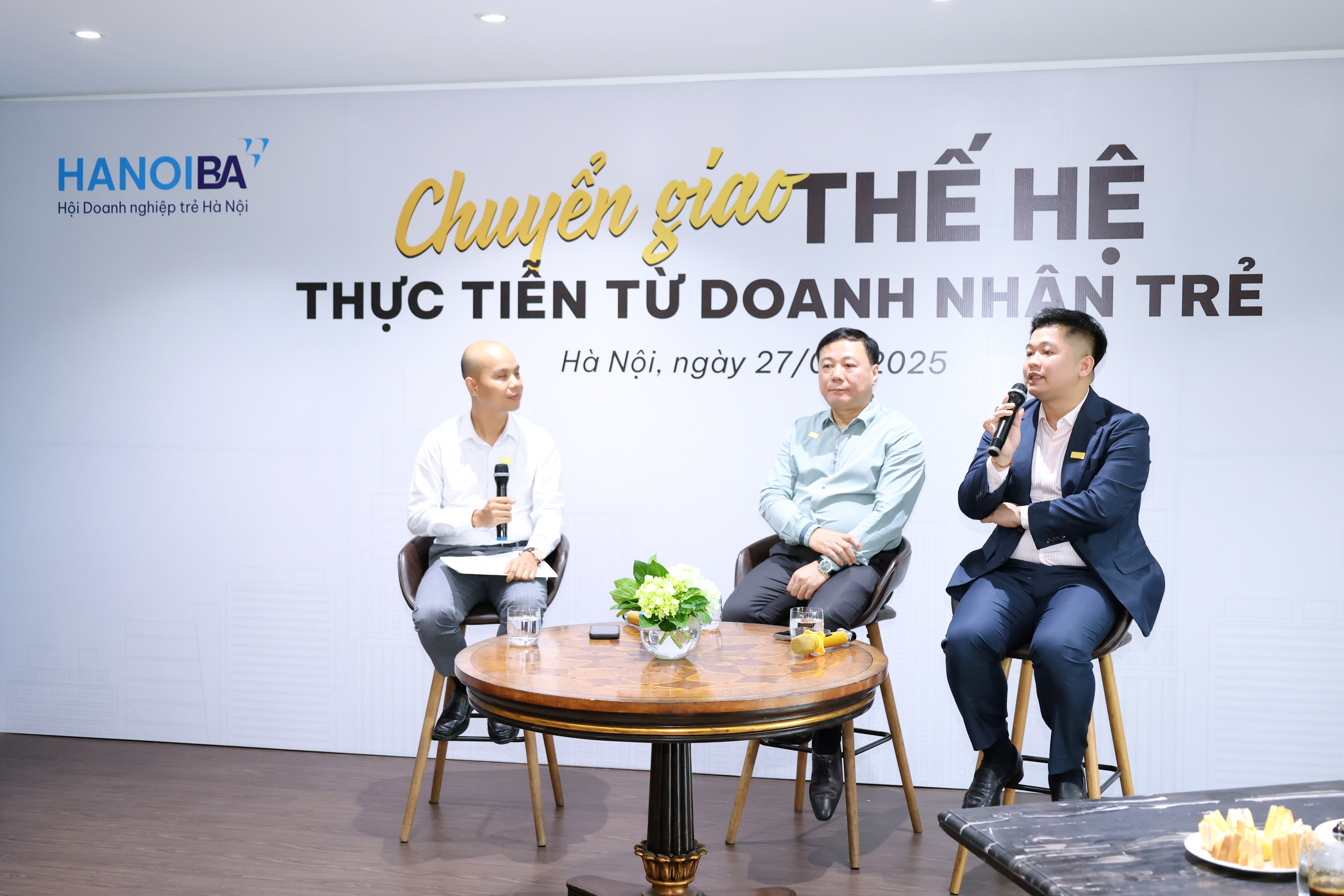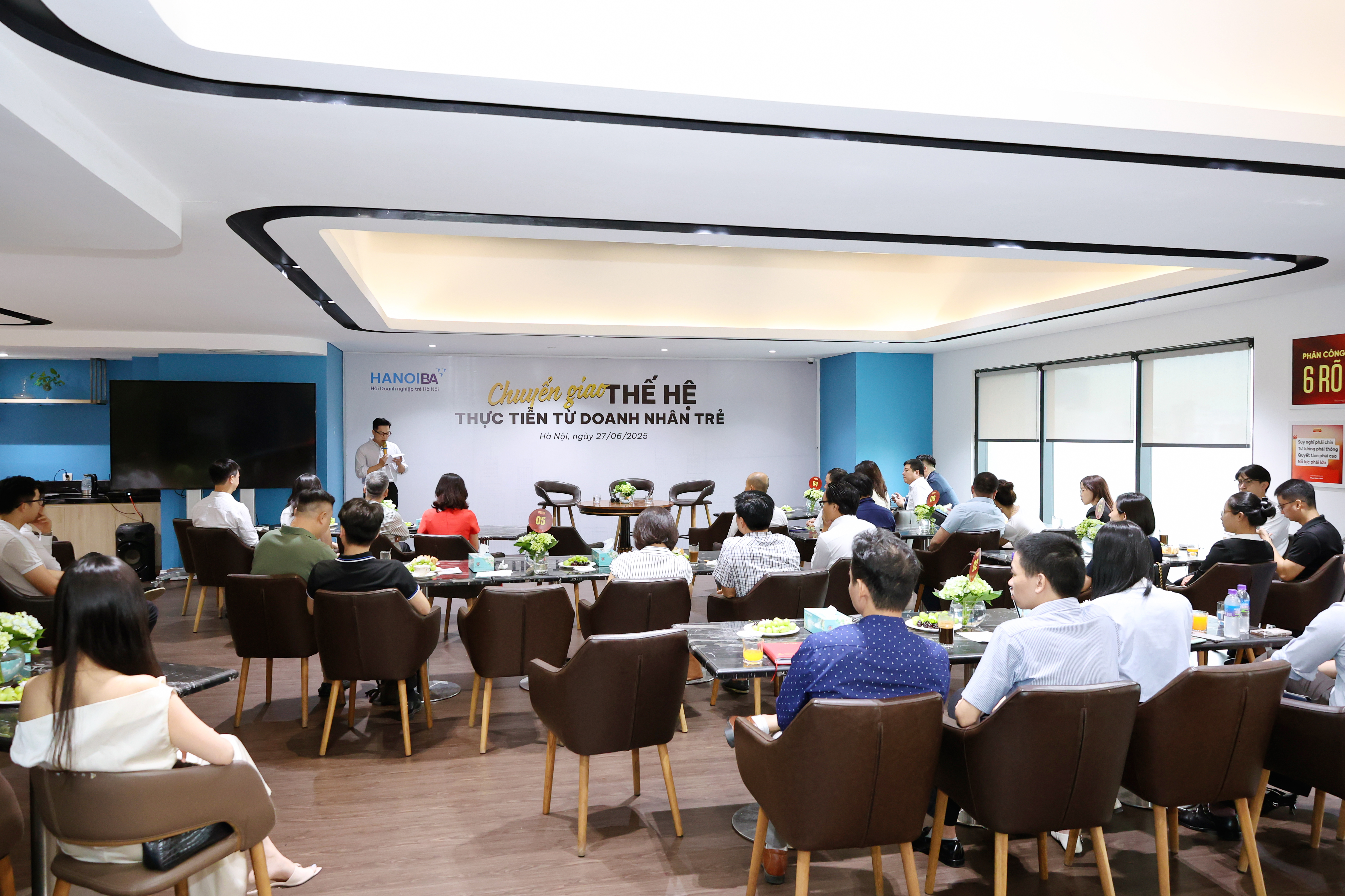 Sáng ngày 27/6/2025, tại trụ sở Alphanam 108 Nguyễn Trãi, Hà Nội, Ban Đổi mới Sáng tạo và Chuyển đổi số - Hội Doanh nghiệp Trẻ Hà Nội (HanoiBA) đã tổ chức chương trình Café sáng với chủ đề “Chuyển giao thế hệ - Thực tiễn từ Doanh nhân trẻ”. Sự kiện đã ghi dấu ấn mạnh mẽ với những chia sẻ sâu sắc và giàu ý nghĩa thực tiễn từ các diễn giả đại diện cho hai thế hệ: thế hệ truyền lửa và thế hệ kế nghiệp.