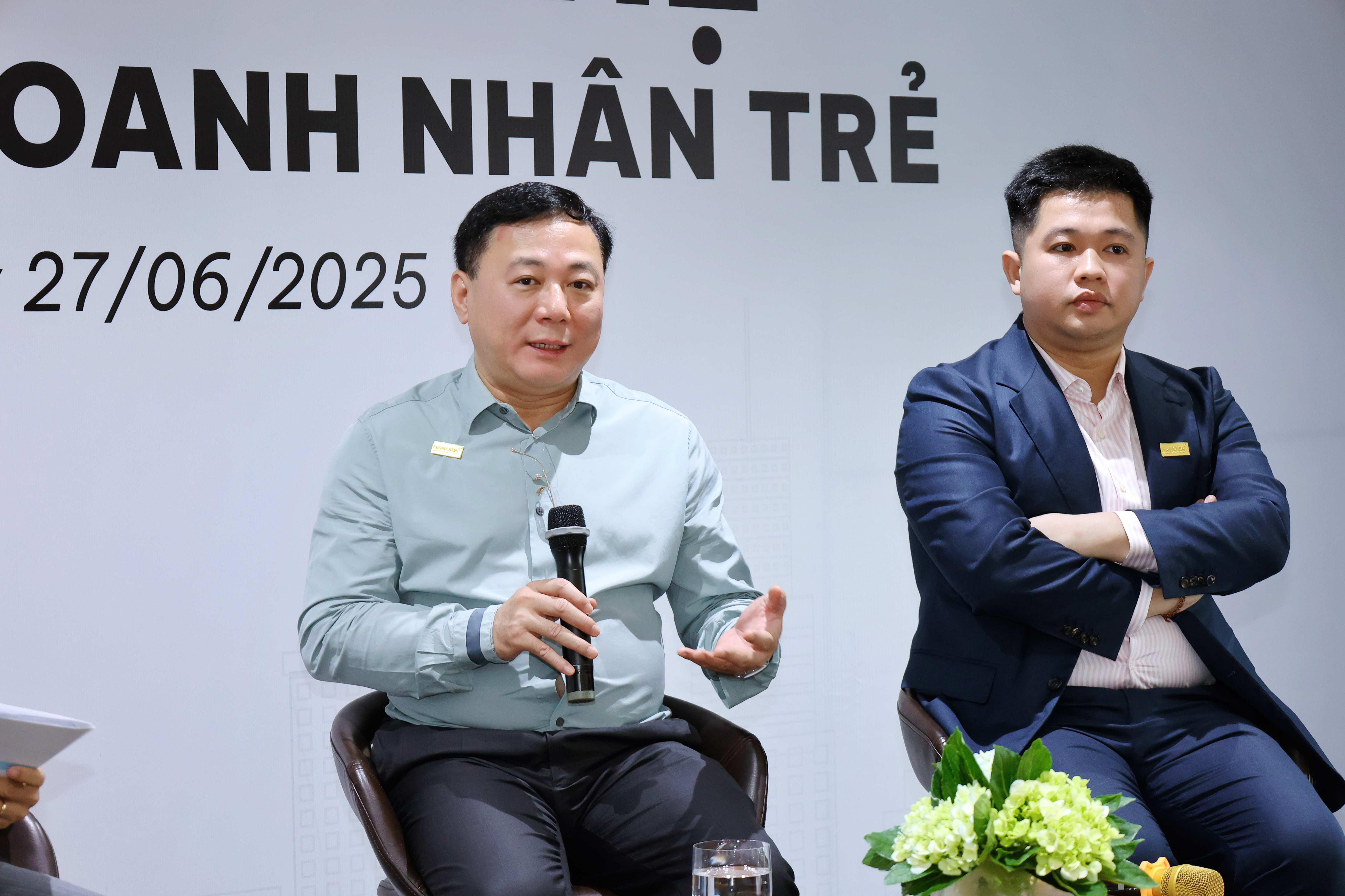 Cùng với Chủ tịch Nguyễn Tuấn Hải, ông Bùi Quang Minh – Phó Tổng giám đốc Tập đoàn Hoà Bình Minh, Phó Chủ tịch Hội Doanh nghiệp Trẻ Hà Nội – diễn giả đại diện cho thế hệ kế nghiệp cũng có những chia sẻ thực tiễn và sâu sắc từ góc nhìn của một người có trên vai nhiệm vụ tiếp quản doanh nghiệp. Đối với ông, động lực lớn nhất thúc đẩy thế hệ kế cận tiếp quản doanh nghiệp đến từ tình yêu sâu sắc, sự thấu hiểu tường tận về doanh nghiệp; cùng với lòng đồng cảm, sẻ chia với những nỗ lực của thế hệ đi trước. Kiên trì và đam mê chính là ngọn lửa đầu tiên thắp sáng tinh thần kế nghiệp. Bất kỳ ai cũng cần phải nhìn rõ mình đang làm gì, và sâu thẳm bên trong, động lực mạnh mẽ nhất chính là khao khát chứng minh giá trị của bản thân. Với kinh nghiệm thực tế về chuyển giao, ông khẳng định “Đừng trao ngọn đuốc, hãy dạy cách tạo ra ngọn lửa”.