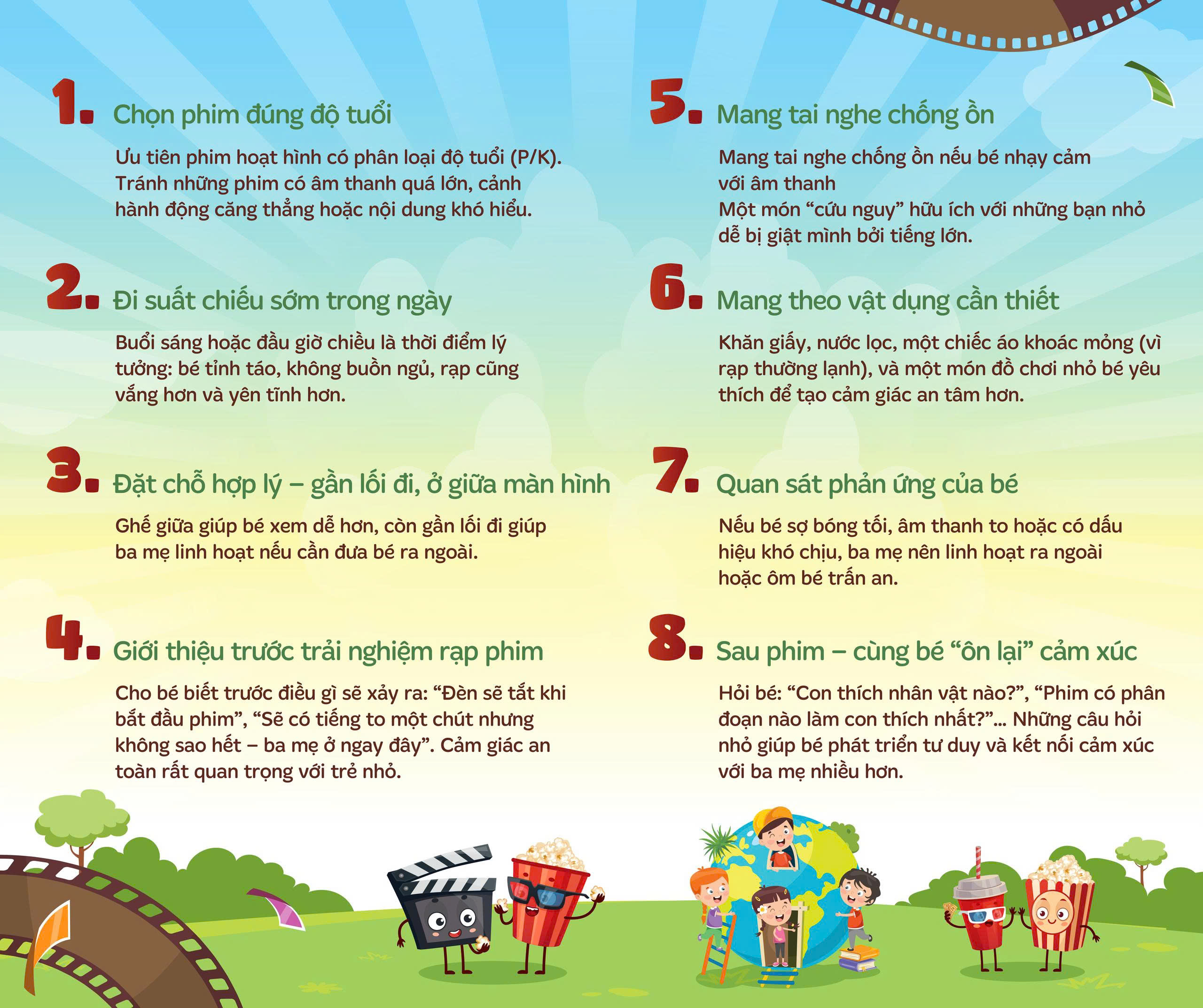 Vậy ba mẹ cần “bỏ túi” tips gì khi đưa con đi xem phim tại rạp?