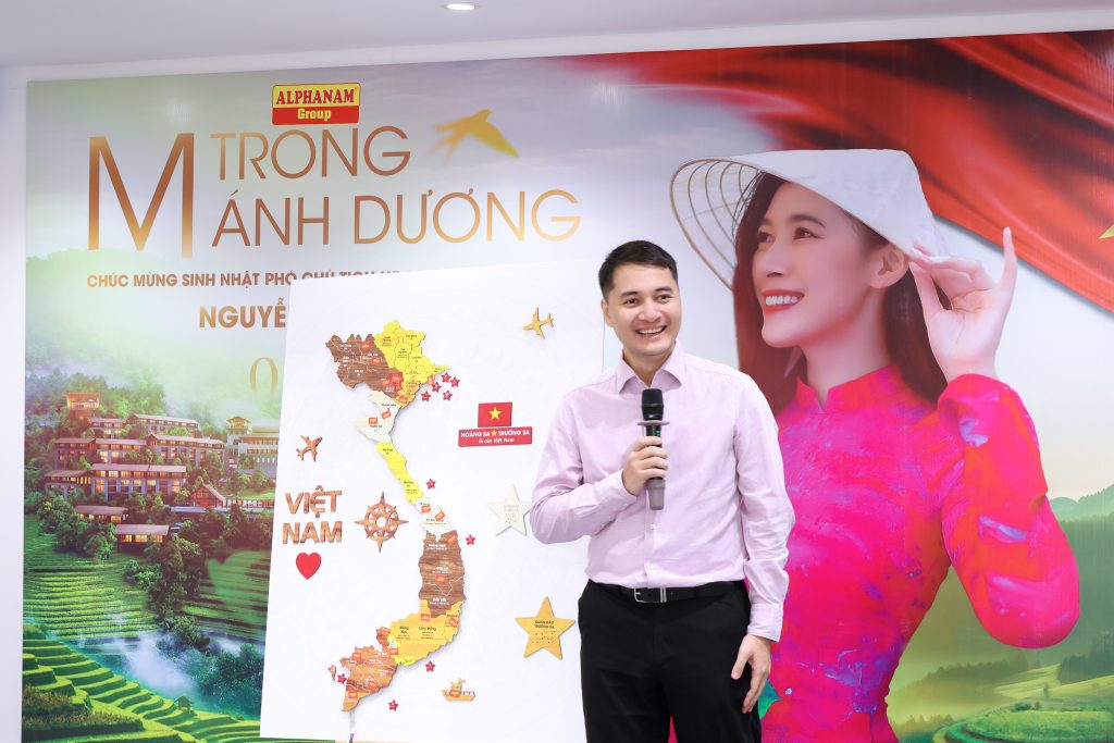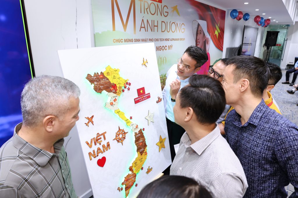 Và chính từ tinh thần đó, cảm xúc được nối dài trong hình ảnh Tấm bản đồ Việt Nam – biểu tượng của tình yêu và cống hiến. Khoảnh khắc xúc động nhất của chương trình là khi các Thủ lĩnh Alphanam cùng nhau đánh dấu lá cờ biểu trưng của Alphanam trên tấm bản đồ Việt Nam – Mỗi lá cờ là một công trình, một khát vọng, và hơn hết là minh chứng cho tình yêu Tổ quốc luôn hiện hữu trong từng bước đi của đại gia đình Alphanam.