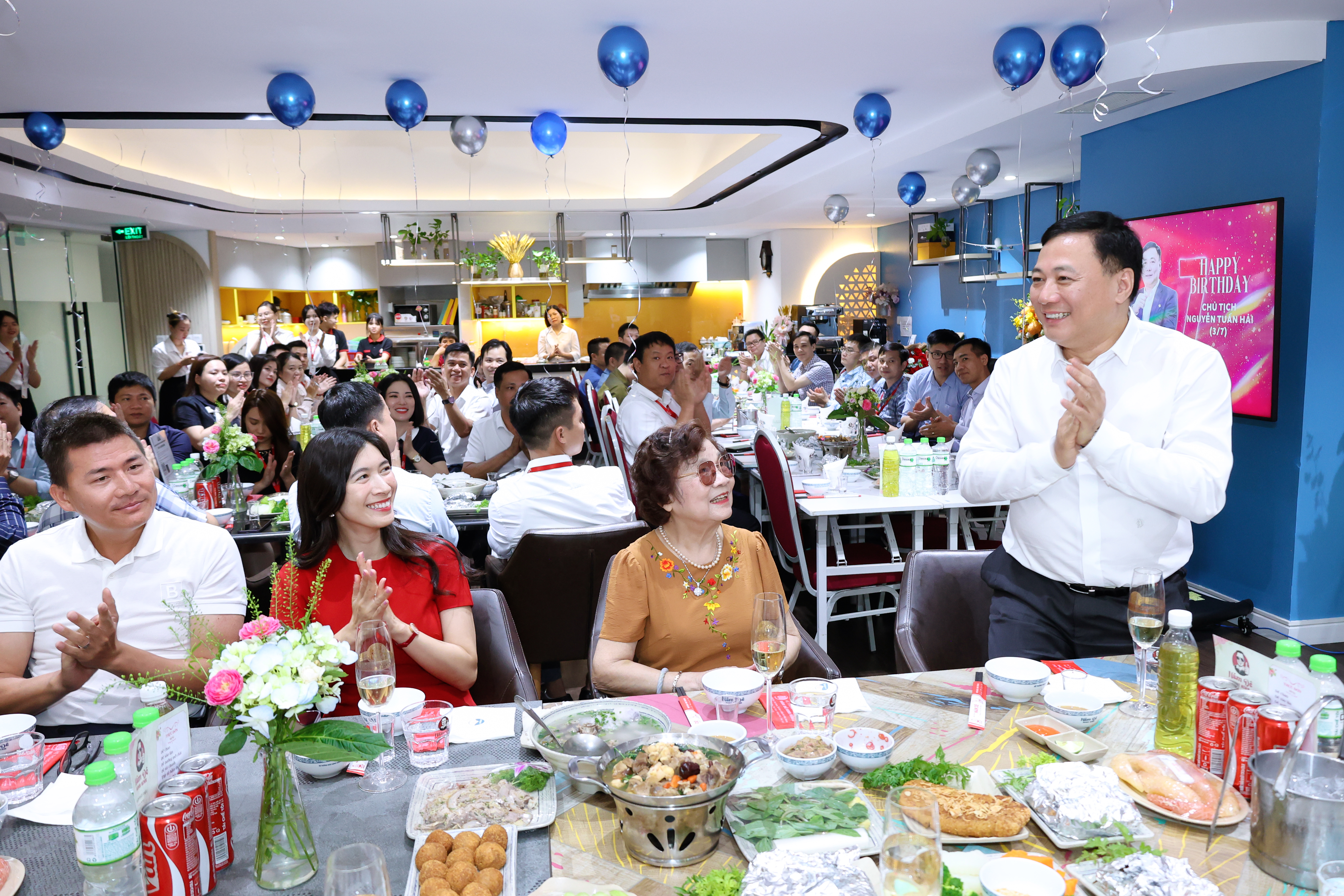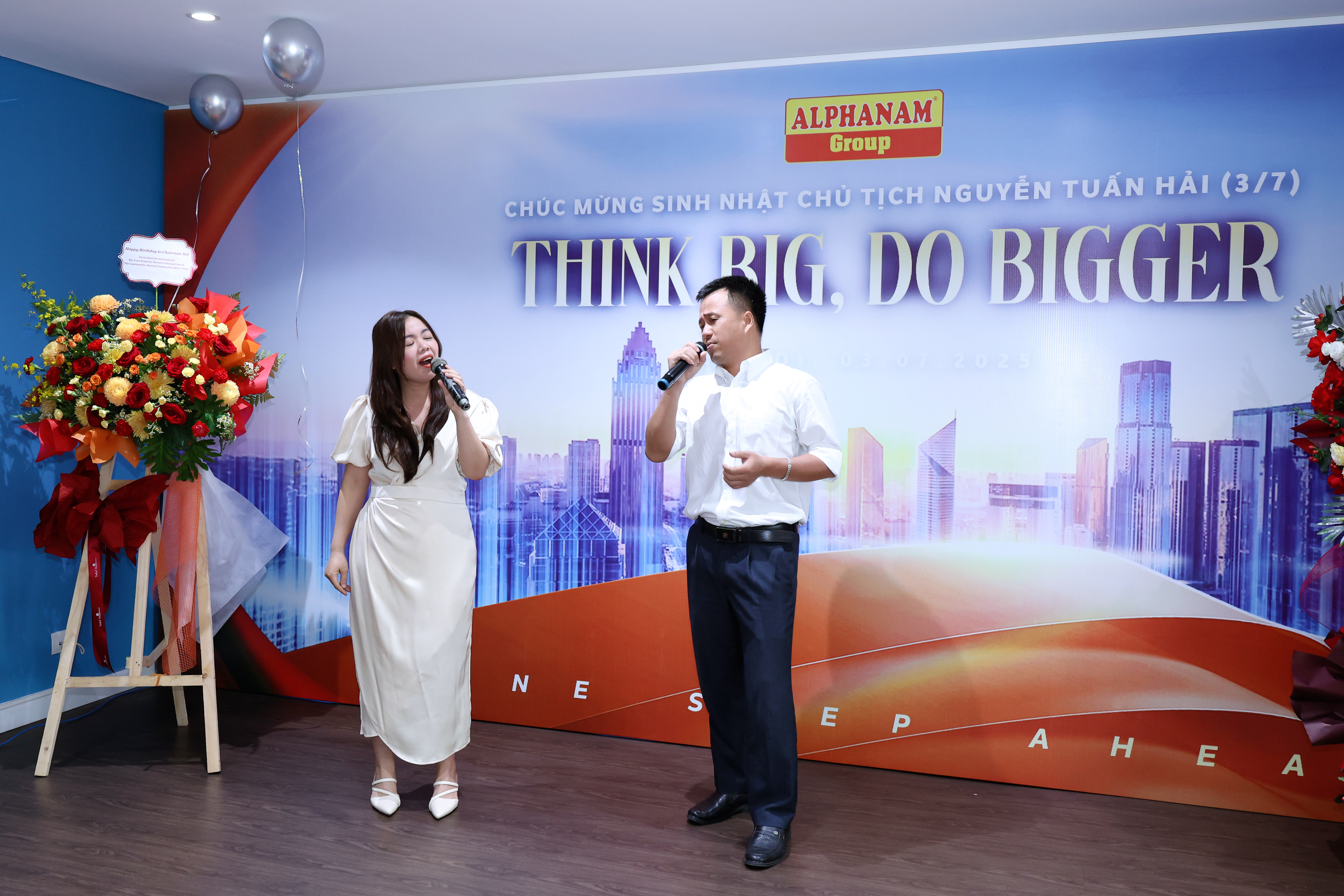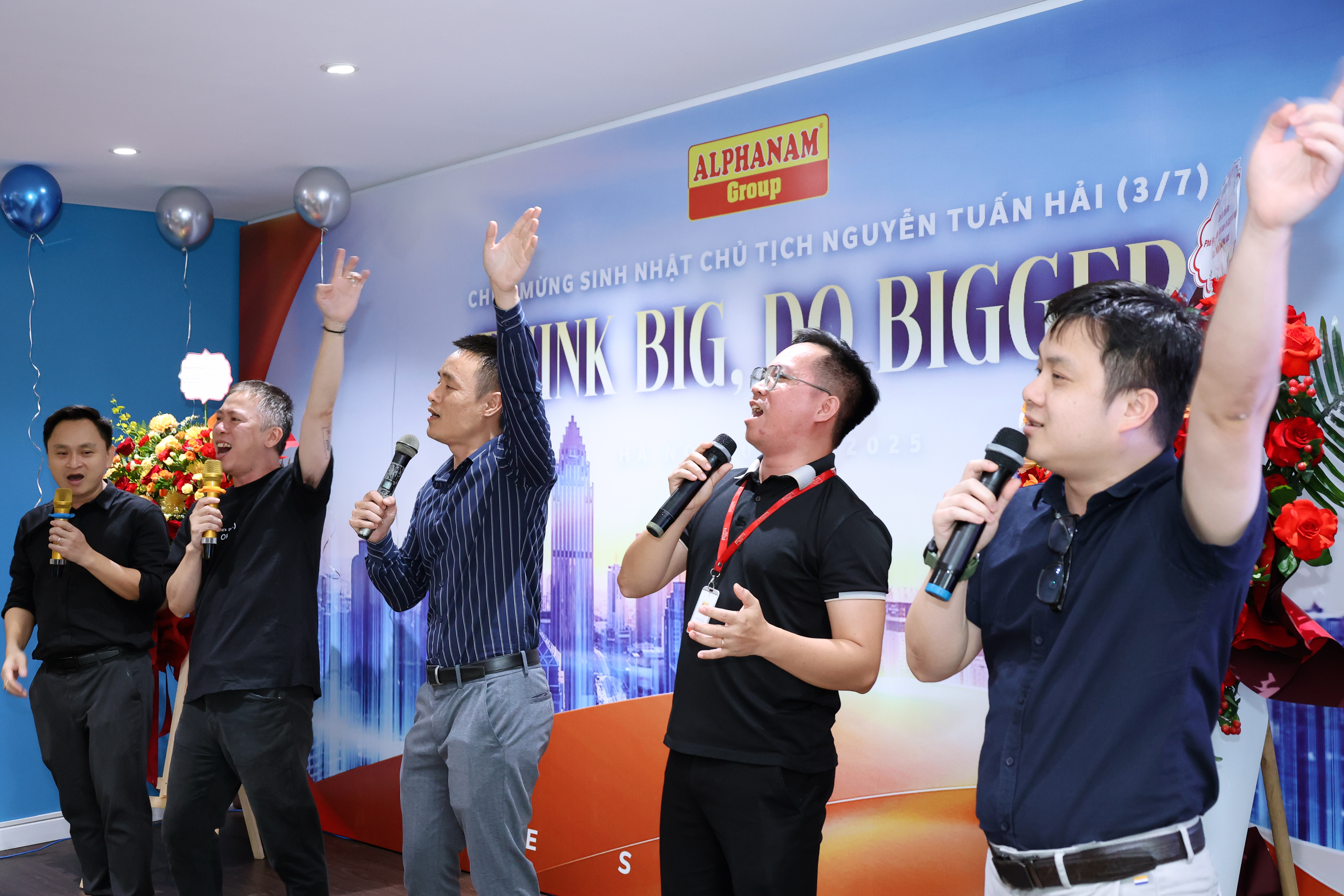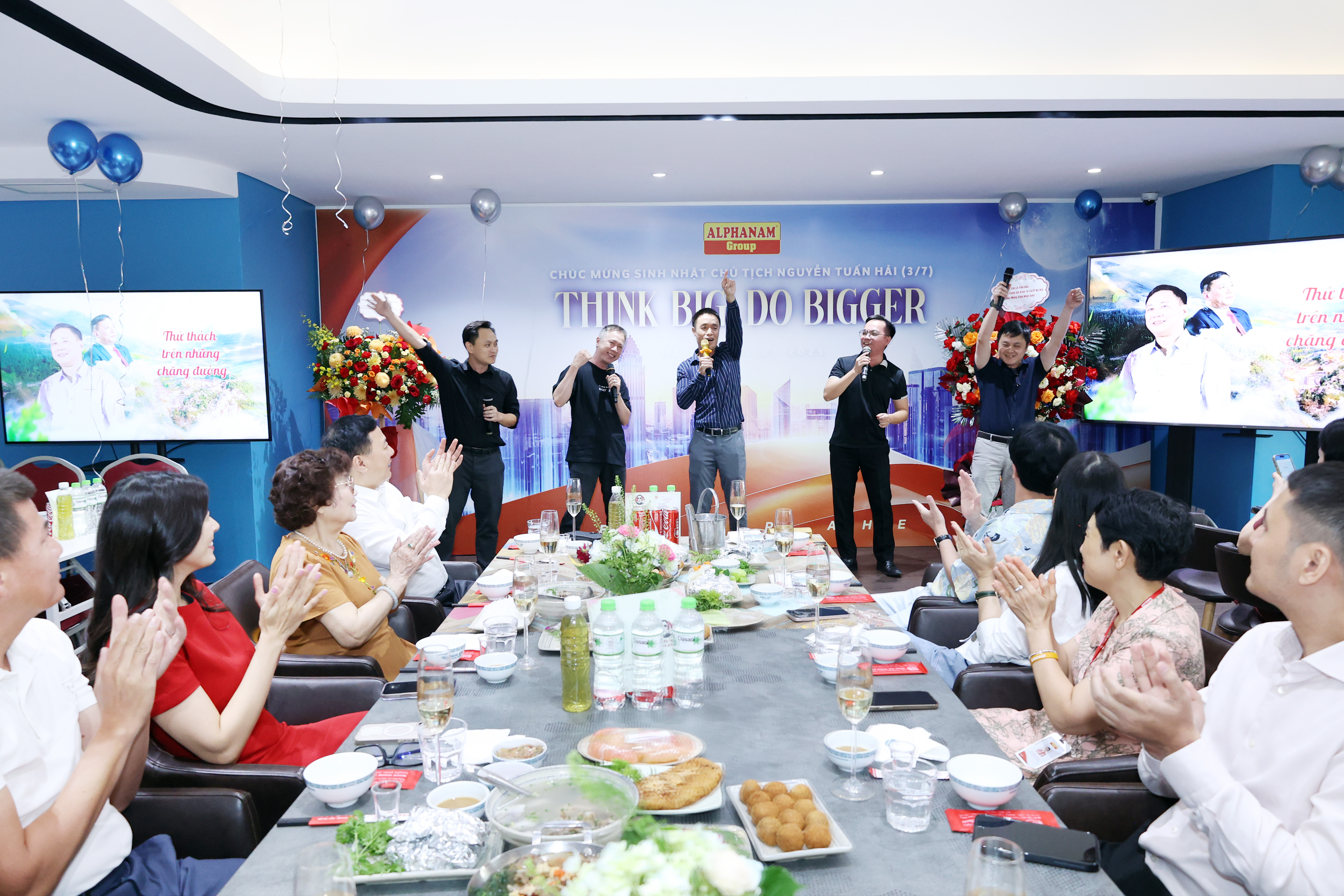 Chương trình sinh nhật đưa Chủ tịch và các thành viên tham dự đi qua nhiều cung bậc cảm xúc. Từ sự mạnh mẽ, hào hùng của hai ca khúc “Những chuyến đi dài”, “Chạm vào vinh quang”; đến khoảnh khắc lắng đọng cùng video “Chủ tịch Nguyễn Tuấn Hải – Nghĩ lớn, làm lớn”, “Thời gian đi đâu mất rồi”. Cả khán phòng háo hức khi những từ ngữ trên Word Cloud dần hiện ra; mỗi từ, mỗi dòng là một cảm xúc, một khát vọng, vẽ nên một bức tranh tinh thần rõ nét về Alphanam. Niềm vui càng nhân đôi khi những lời chúc từ các đơn vị ở Lào Cai, An Giang, Đà Nẵng cũng được gửi về, thể hiện sự gắn kết qua tình cảm dành cho người lãnh đạo cao nhất của Tập đoàn. Trong khoảnh khắc nâng ly, cả khán phòng đồng lòng gửi đến Chủ tịch những lời chúc tốt đẹp và chân thành nhất.